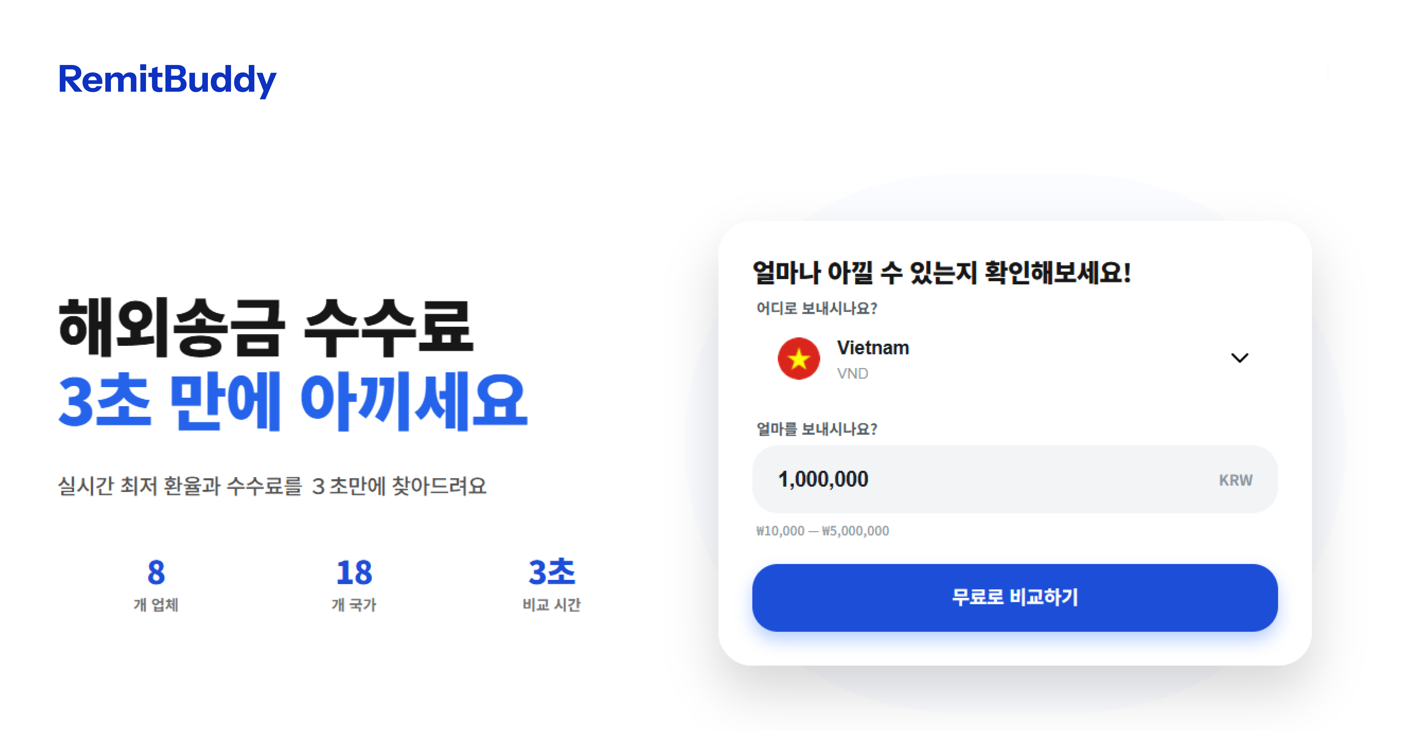 네! RemitBuddy는 100% 무료예요. 환율 비교에 어떤 수수료도 받지 않아요. 저희 목표는 추가 비용 없이 최고의 송금 조건을 찾아드리는 거예요.